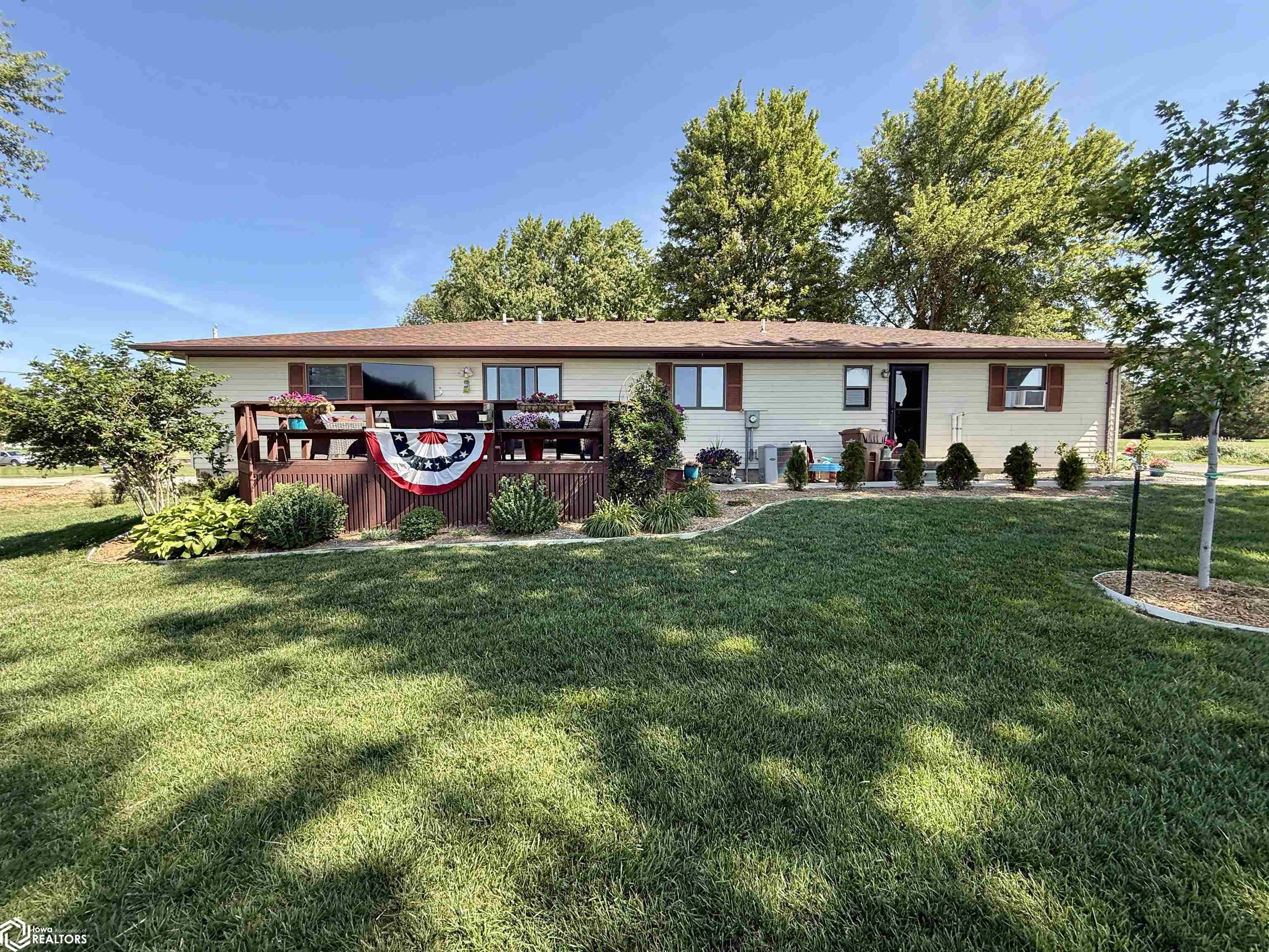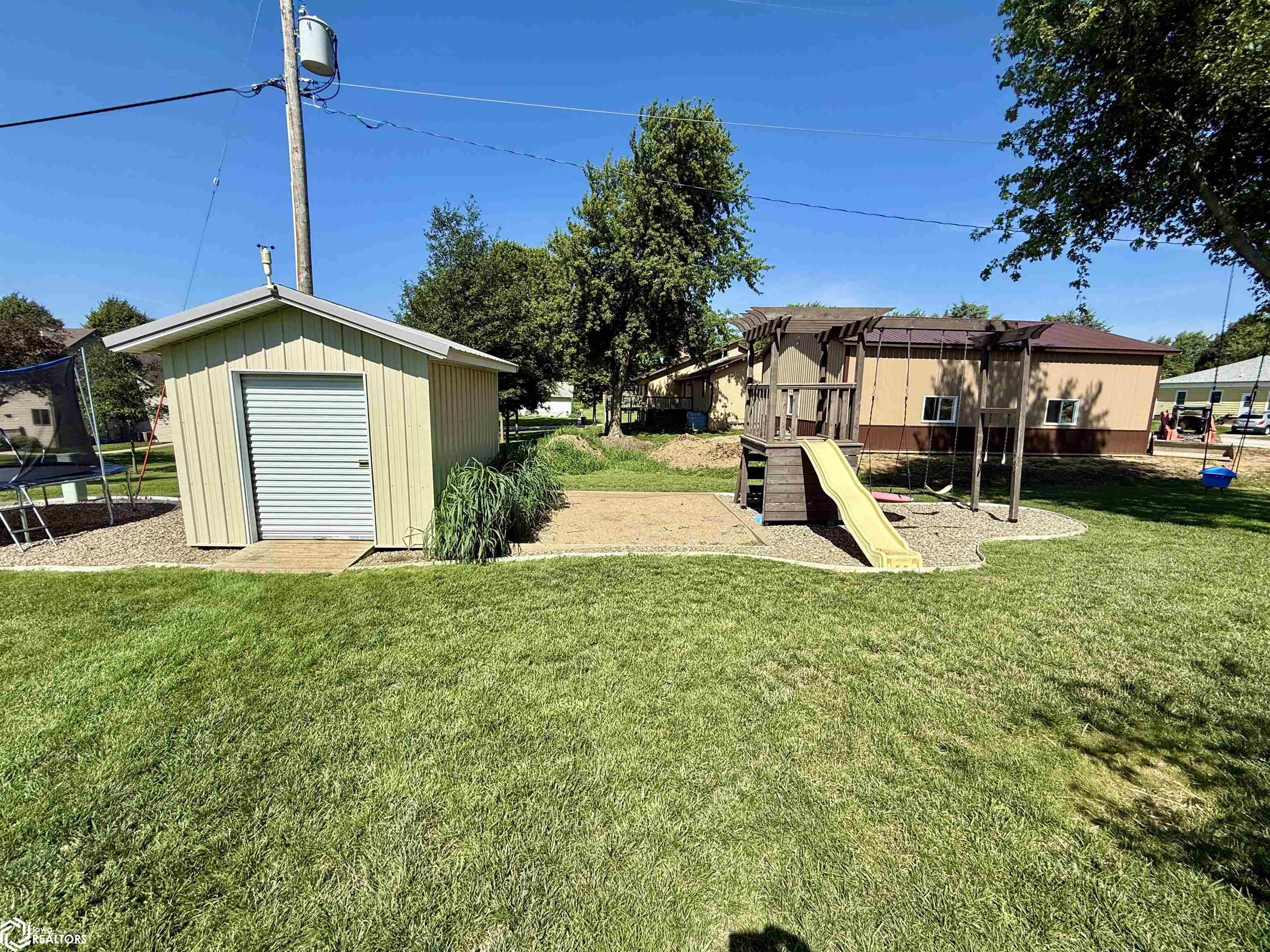 If you're looking for space, this is the one! This spacious ranch-style home with a walk-out basement sits on over 21,000 square feet of yard, offering the perfect blend of town living and elbow room. Inside, you’ll find 5 bedrooms, a generously sized kitchen with dining area, and convenient main level laundry. The primary bedroom includes its own private bath for added comfort. Downstairs, the lower level boasts a huge family room—perfect for gatherings—and two oversized rooms for all your storage needs. The garage is anything but standard, featuring an epoxy floor and built-in entertaining area. Step outside to enjoy beautiful views from the deck. A storage shed and swing set are also included, making this home truly move-in ready with space for everyone.